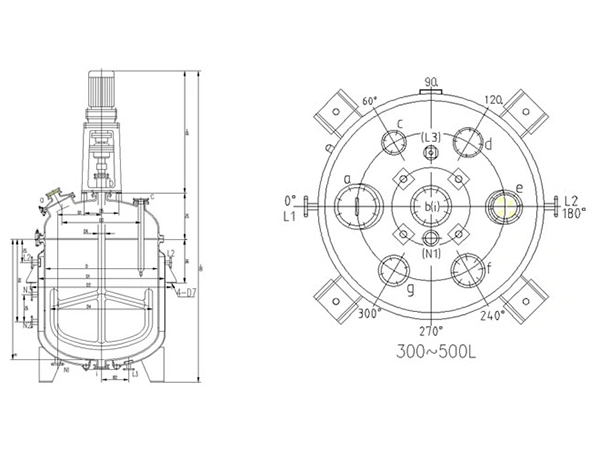 Dimensions of Open Type Glass Lined Reactors (mm)