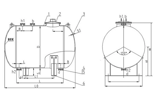 Dimensions of Horizontal Glass Lined Storage Tank, 16000L-80000L